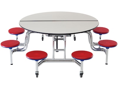 - Mobile round-shape stool table with eight stools is perfect for heavy-use and heavy-turn settings, providing years of trusted service