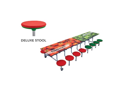 AmTab Rectangular Mobile Cafeteria Table w/ 16 Stools, 30" x 145", Assorted Colors (MST1216)
