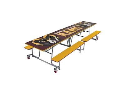 AmTab Rectangular Mobile Cafeteria Table w/ 4 Benches, 30" x 145", Assorted Colors (MBT12)