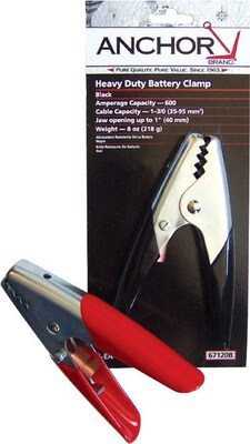 Anchor Brand® Standard battery clamp in black color features heavy-duty tension spring that offers positive connection on front/side. Clamp has a maximum current rating of 600 A and steel jaw with 1" maximum opening for convenience.