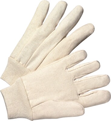 Anchor Brand Canvas Gloves, Cotton, Knit-Wrist Cuff, Men's Size, Unlined, White, 12 Pair/Box