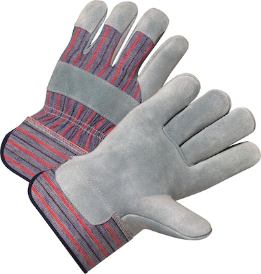 Anchor Brand® Large palm gloves in pearl grey color are made of split cowhide leather with rubberized safety cuff to provide extra protection. Gloves feature gunn pattern style for durability and flexibility.