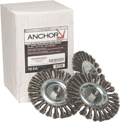 Anchor Brand Standard Twist Knot Wheel, Carbon Steel, Knot Wire Size 0.0230", 6" Diam.