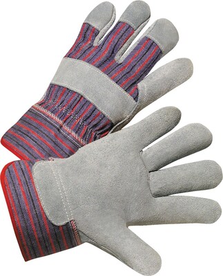 Anchor Leather Palm Work Gloves, Cowhide, Gray, Striped Back, Large, 12/Box (1250)