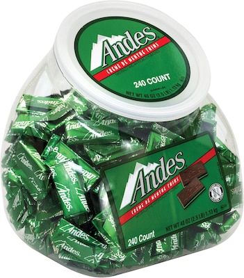 - A 240-Piece resealable candy jar of Andes Creme de Menthe individually wrapped Chocolate Mints