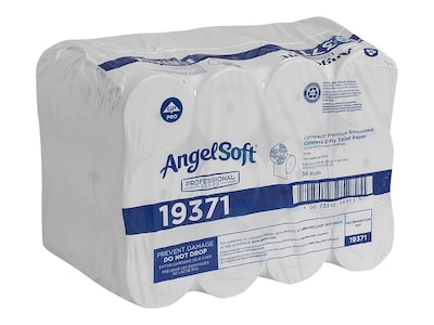 Angel Soft Professional Series Compact Recycled Coreless Toilet Paper, 2-Ply, White, 750 Sheets/Roll, 36 Rolls/Carton (19371)