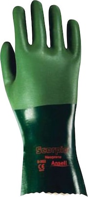 Ansell® Scorpio® X-Large gloves in green color feature specially designed neoprene construction for safety and comfort. Gloves with gauntlet cuff are snug fit and ideal for industrial or warehouse works.