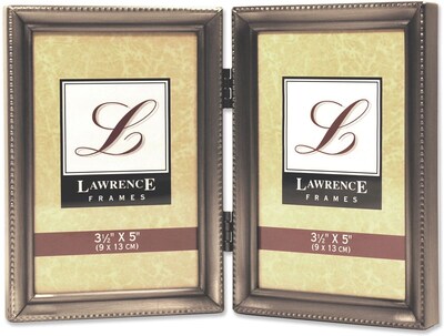 The Lawrence Frames 11535D Hinged 3" x 5" Metal Double Picture Frame is ideal for tabletop display and comes in a pewter finish that makes it look appealing.