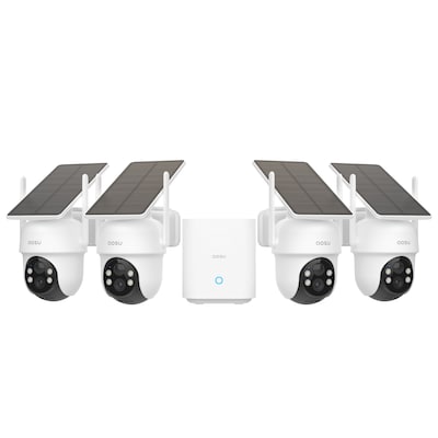 aosu 2K QHD 3.0-MP Outdoor Dual-Band Wireless AI-Smart Solar Security 4-Camera Kit with HomeBase Recorder, White (C9C-4H)