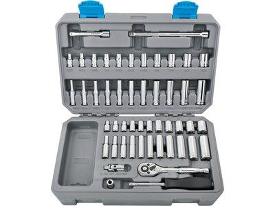 Great for avid mechanics and for everyday maintenance and repairs, this Apollo Tools extensive socket set is made of chrome vanadium steel and contains a selection of 1/4" sockets and 1/4" deep sockets in metric and SAE. The set also includes a 72-tooth quick-release ratchet and a 1/4" nut driver handle, a 1/4" drive universal joint, and a useful selection of adapters and extensions.