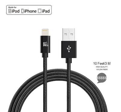 Apple Certified Durable Lightning Cable for iPhone, iPad, 10ft Black (LGHTMFI10FT-BLK)