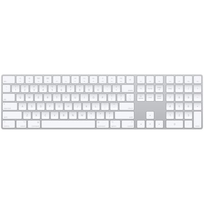 Magic Keyboard with Numeric Keypad features an extended layout, with document navigation controls for quick scrolling and full-size arrow keys for gaming. A scissor mechanism beneath each key allows for increased stability, while optimized key travel and a low profile provide a comfortable and precise typing experience. The numeric keypad is also great for spreadsheets and finance applications. And the built-in, rechargeable battery is incredibly long-lasting, powering your keyboard for about a month or more between charges.