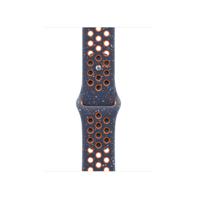 Made with compression-molded perforations for breathability, the Nike Sport Band is durable and strong, yet surprisingly soft. It features colorful flakes that create a randomized pattern, making each band completely unique. The smooth, dense material drapes elegantly across your wrist and feels comfortable next to your skin. An aluminum pin-and-tuck closure gives the pin a fresh matte finish. This band contains at least 30% recycled fluoroelastomer, with each flake containing at least 66% recycled fluoroelastomer.