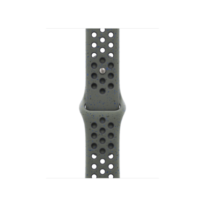 Made with compression-molded perforations for breathability, the Nike Sport Band is durable and strong, yet surprisingly soft. It features colorful flakes that create a randomized pattern, making each band completely unique. The smooth, dense material drapes elegantly across your wrist and feels comfortable next to your skin. An aluminum pin-and-tuck closure gives the pin a fresh matte finish. This band contains at least 30% recycled fluoroelastomer, with each flake containing at least 66% recycled fluoroelastomer.