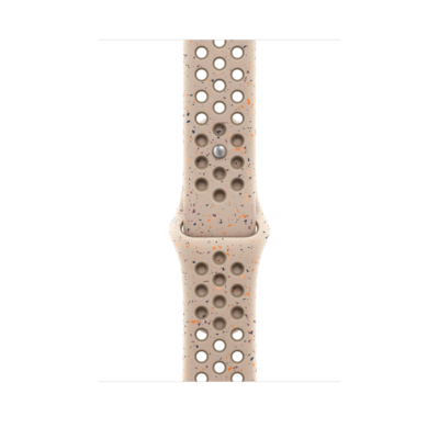 Made with compression-molded perforations for breathability, the Nike Sport Band is durable and strong, yet surprisingly soft. It features colorful flakes that create a randomized pattern, making each band completely unique. The smooth, dense material drapes elegantly across your wrist and feels comfortable next to your skin. An aluminum pin-and-tuck closure gives the pin a fresh matte finish. This band contains at least 30% recycled fluoroelastomer, with each flake containing at least 66% recycled fluoroelastomer.