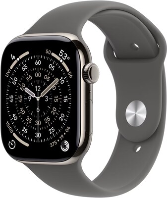 Apple Watch Series 11 GPS + Cellular Smartwatch, 42mm, Natural Titanium Case, Stone Gray Sport Band, Small/Medium (MF8M4LW/A)