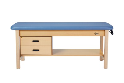Aristo Wood H-Brace Physician Exam Table with Shelf, 2 Drawer Cabinet, Paper Cutter, Holder, 500lbs. Capacity, Blue