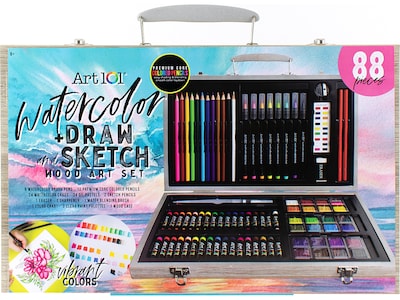 Art 101 Watercolor Draw and Sketch Drawing Kit, Assorted Colors, 88 Pieces (53088)
