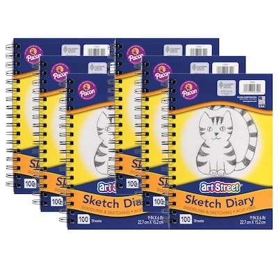 Art Street 6" x 9" Spiral Bound Sketch Book, 100 Sheets/Book, 6/Bundle (PAC2350-6)