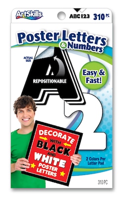 Artskills Poster and Bulletin Board Lettering, Quick Letters, Black & White, Pack of 310 (PA-1249)