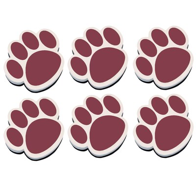 Ashley Dry Erase Magnetic Whiteboard Erasers, Maroon Paw, Pack of 6 (ASH10012-6)