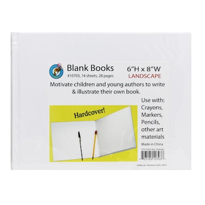 Ashley Hardcover Blank Book Landscape, 8" x 6", White (ASH10703)