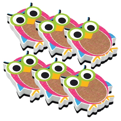 Ashley Magnetic Whiteboard Eraser, Burlap Scribble Owl, Pack of 6 (ASH10049-6)