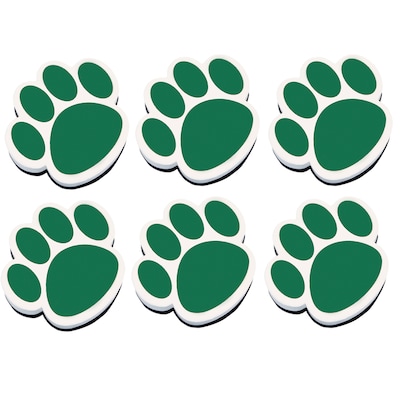 Ashley Magnetic Whiteboard Eraser, Green Paw, Pack of 6 (ASH10001-6)