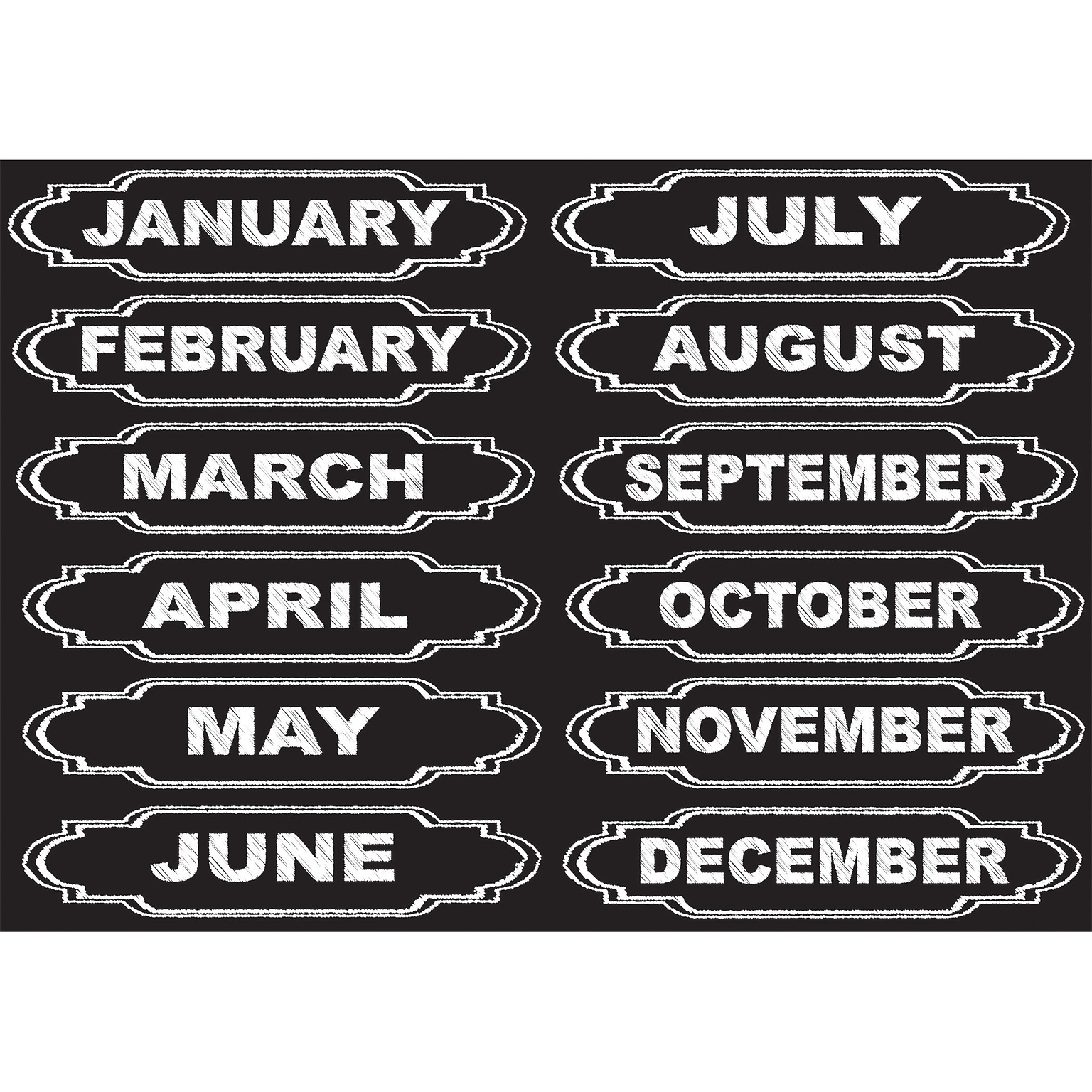 Ashley Productions Die-Cut Magnets, Chalkboard Calendar Months, 12/Pack (ASH19005)