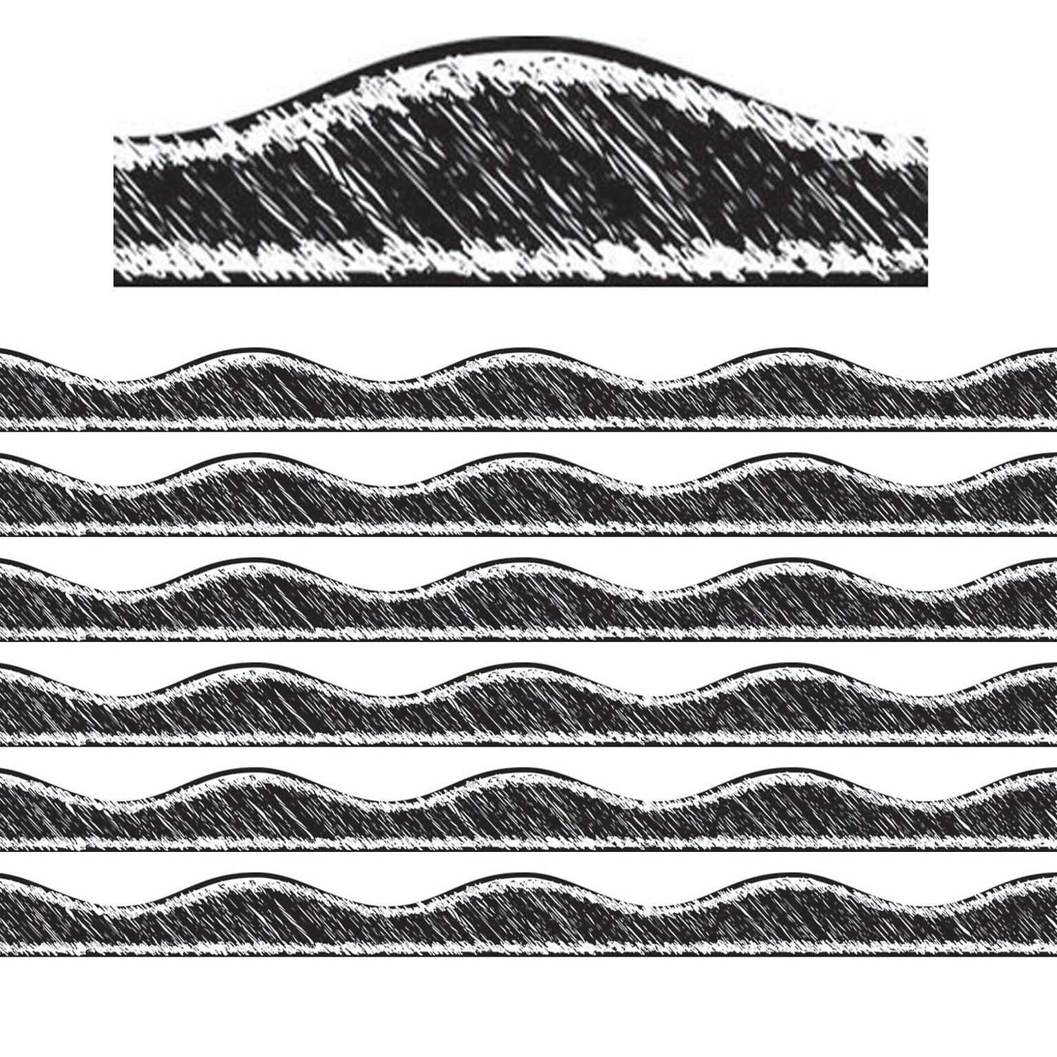 Ashley Productions Magnetic Scalloped Border, 1" x 72', Black Scribble Chalk (ASH10212-6)