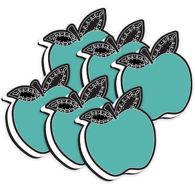 Ashley Productions Magnetic Whiteboard Eraser, Teal Apple with Chalk Loop Leaves, Pack of 6