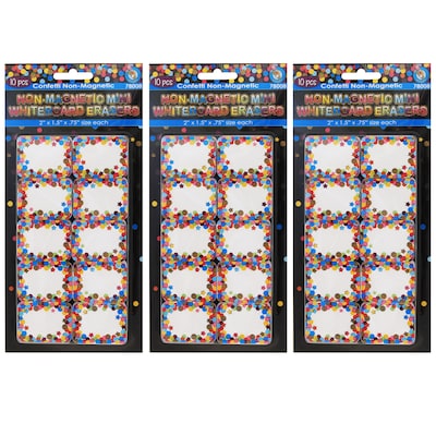 Ashley Productions Non-Magnetic Mini Whiteboard Erasers, Confetti, 10 Per Pack, 3 Packs (ASH78008-3)
