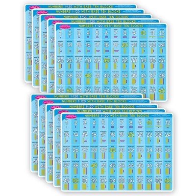 Ashley Productions Smart Poly 12" x 17" Base 10, 1 to 120 Learning Mat, Double-Sided, Pack of 10 (ASH95638)