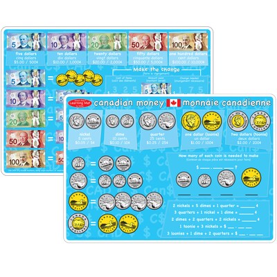 Ashley Productions Smart Poly 12" x 17" Canadian Currency Learning Mat, Double-Sided (ASH95029)
