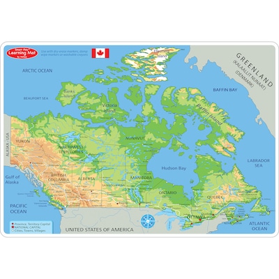 Ashley Productions Smart Poly 12" x 17" Physical Canada Map Learning Mat, Double-Sided (ASH95024)