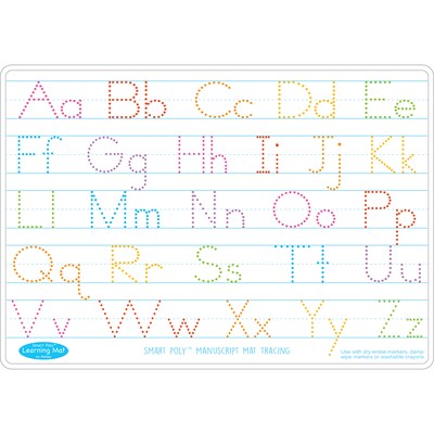 Smart Poly™ material has been designed for the classroom and home. The material is strong, durable, water resistant, and does not need lamination. Heavy duty double-sided surface for fun and colorful learning on both sides. Write-on/wipe-off surface. A-Z tracing on the front, numbers 1-10 on the back with 4 black handwriting lines. Use with dry erase or water based markers and washable crayons. Each side is an interactive lesson. Mat measures 12" x 17".
