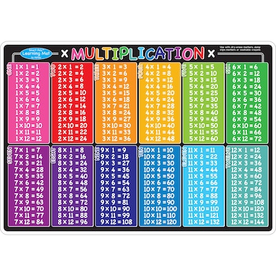 Smart Poly™ material has been designed for the classroom and home. The material is strong, durable, water resistant, and does not need lamination. Practice multiplication with this learning mat. Includes tables 1-12. Heavy duty double-sided surface for fun and colorful learning on both sides. Write-on/wipe-off surface. Use with dry erase or water based markers and washable crayons. Each side is an interactive lesson. Mat measures 12" x 17".