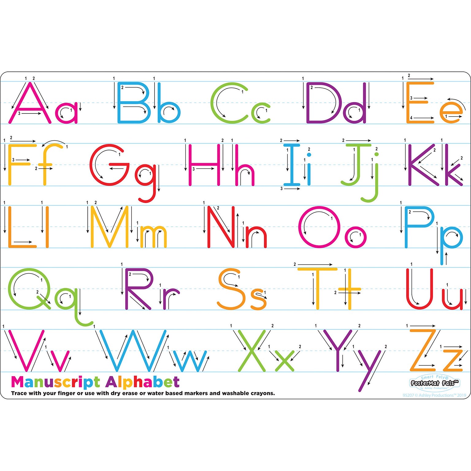 Ashley Productions® Smart Poly® PosterMat Pals® Manuscript Alphabet, 12" x 17.25" (ASH95207)