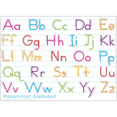 It's a poster, it's a placemat, it's both! Smart Poly® material has been designed for the classroom and home. The material is strong, durable, water resistant, and does not need lamination. Heavy duty surface for fun and colorful learnings. Write-on/wipe-off surface for use with dry erase or water based markers and washable crayons. Measures 13" x 9.5". Practice tracing the alphabet.