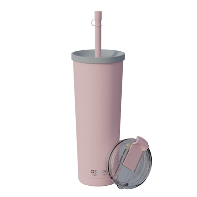 ASOBU Ocean Double-Walled Vacuum-Insulated Stainless Steel Travel Tumbler with Flexible Straw & Dual Lids, 27 oz., Pink (ICT27)