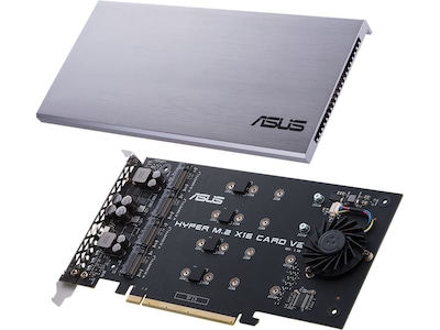 The ASUS Hyper M.2 x16 V2 card provides four M.2 slots to let you expand your system with high-performance SSD storage. Designed for the latest generation of NVMe drives, the card features an upgraded power supply that provides up to 14W of power per drive, as well as a large heatsink and active fan to ensure drives stay cool for optimum performance.