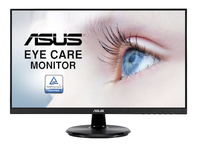 ASUS VA24DQ Eye Care Monitor features 23.8 inch IPS panel with Full HD (1920 x 1080) resolution, providing 178° wide viewing angle panel and vivid image quality. Up to 75Hz refresh rate with Adaptive-Sync/FreeSync technology to eliminate tracing and ensure crisp and clear video playback.