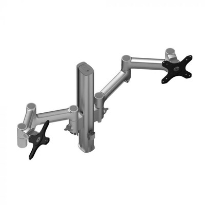This is a dual 18” arm combination attached to a 15.7” post. The two arms can be installed in a dual row side-by-side or back-to-back configuration. Display height, optimal viewing angle and orientation can be set to individual requirements. Built from lightweight and yet durable aluminum, the mount can be easily recycled at the end of its life. Ideal for displays up to 32” in a landscape or portrait orientation. Perfect for screen real estate-demanding applications and multi-user environments in applications where display height does not require frequent adjustment.