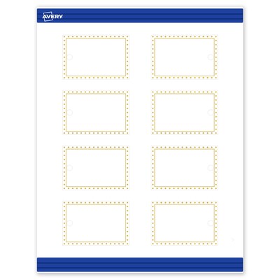 Pre-printed with beautiful designs, Avery Rectangle 2" x 3" Matte White Tags with the Gold Border with Gold Dots design help save ink and also elevate your branding and events. Pre-designed and printed with shiny matte gold ink with high-quality printers, these patterns will definitely stand out and are not easily achieved with desktop printers. Mix and match these tags with other Avery cards, tags, and name badges from the same collection that have the same pre-printed design to create a cohesive look. Made with durable 80 lbs / 216 gsm cardstock with microperforated edges, these tags are pre-punched with holes and great for creating double-sided gift tags, product tags, pricing tags, and more. The versatile matte white material is a great solution for any project. Compatible with both laser and inkjet printers, these tags make it a breeze to personalize them with your own information with a desktop printer while still looking professional. Avery premium tags are carefully constructed with beneficial features to provide the best results and allow your brand to stand out. Sure Feed technology reduces printer jams by creating a more reliable feed through your printer. Easily customize gold wedding tags, luxury holiday event tags, premium event tags, festive gold tags, and more with your own logos, text, and designs by searching for the Presta ID S00-DJ3 and using the templates and tools in Avery Design & Print on the Avery site. Whether you’re a business owner that wants to add more flair to products, an event planner looking to elevate an event, or a teacher looking to step up class projects, Avery tags make it easy to translate your designs into reality.