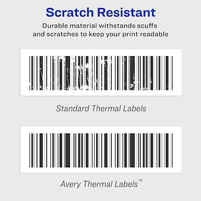 Avery 4150 direct thermal labels are designed to be compatible with a variety of thermal printers including the Seiko Smart Label Printer(R), DYMO LabelWriter(R) and Zebra(R) printers. Each durable roll is individually packed in a special bag designed to protect each roll from light and moisture. These multipurpose smudge-free labels are resistant to water, dirt, dust and grease. The adhesive helps labels stick and stay in place, making them perfect for a variety of applications. Great for barcode labels, shipping labels, food & beverage labels, inventory labels, ID labels and more.