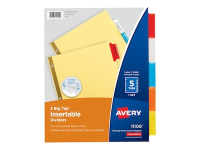 Avery Big Tab Insertable Paper Dividers, Assorted Color 5 Tab, White (11121)