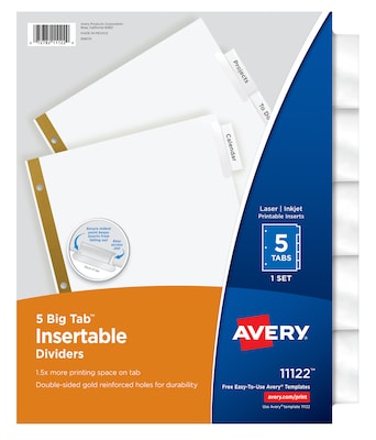 Avery Big Tab Insertable Paper Dividers, Assorted Color 5 Tab, White (11121)