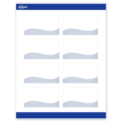 Add an elevated, professional touch to your branding or event with Avery Rectangle 2" x 3-1/2" Matte White Business Cards featuring the Blue Waves design. These premium cards are pre-printed with a vivid, high-resolution design, giving your business or event an instant upgrade. With a design already pre-printed, you can easily customize the blank space while using less ink—just personalize and print. For a cohesive look, pair these business cards with other Avery products in the same design collection. Made with sturdy 80 lbs. / 216 gsm cardstock and micro-perforated edges, these customizable cards feature a pre-printed design on one side and can be personalized on both sides for full customization. The smooth matte white finish delivers clean, versatile results that work beautifully across a wide range of projects.