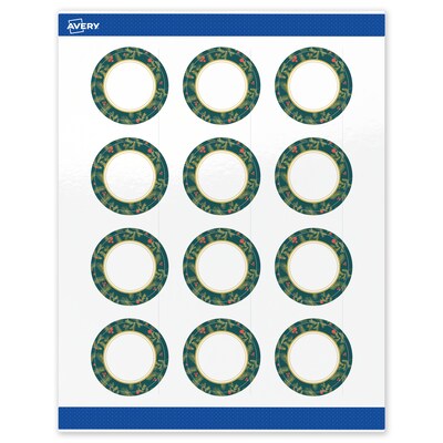 Add festive fun to branding and events with Avery(R) 2" Diameter Round Holiday Labels featuring the Teal Border with Gold Scalloped Frame and Holly Berries design. Elevate your business or event with these premium, printable labels that feature a pre-printed border with elegant metallic accents, delivering a look no standard desktop printer can match. With a design already pre-printed, you can easily customize the blank space while using less ink—just personalize and print. For a cohesive look, pair these holiday labels with other Avery(R) products in the same design collection. Featuring convenient Pop-Up Edge technology for faster peeling, these permanent customizable labels apply smoothly and stay securely in place. The glossy white finish reflects light for vivid color and detail, creating a premium, polished appearance. Built-in Sure Feed(R) technology helps reduce misalignments and printer jams by creating a more reliable feed through your printer. Compatible with laser and inkjet printers, you can easily print holiday gift stickers, holiday product labels, Christmas tag stickers, and more with professional results. Just use Avery(R) Design & Print and search Avery Presta(R) Template S00-FF1 to add your own logo, text, and artwork for a personal touch. Our easy-to-use design software lets you add your own personal touch while enjoying the consistency of the stunning, pre-printed design.