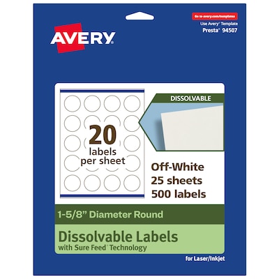 Avery Dissolvable Circle Multipurpose Labels, 1-5/8" Dia., Off-white, 500/Pack (94507)